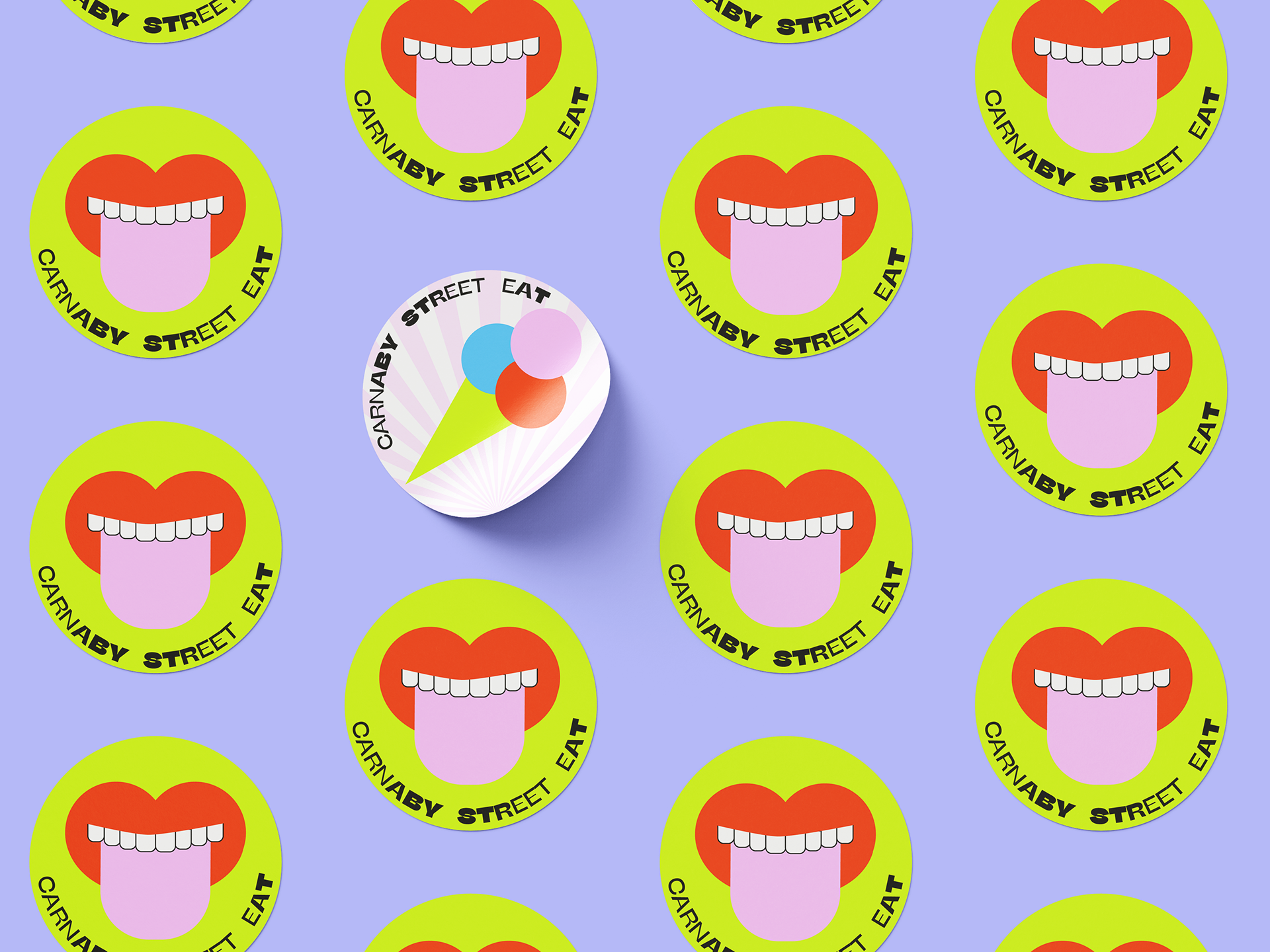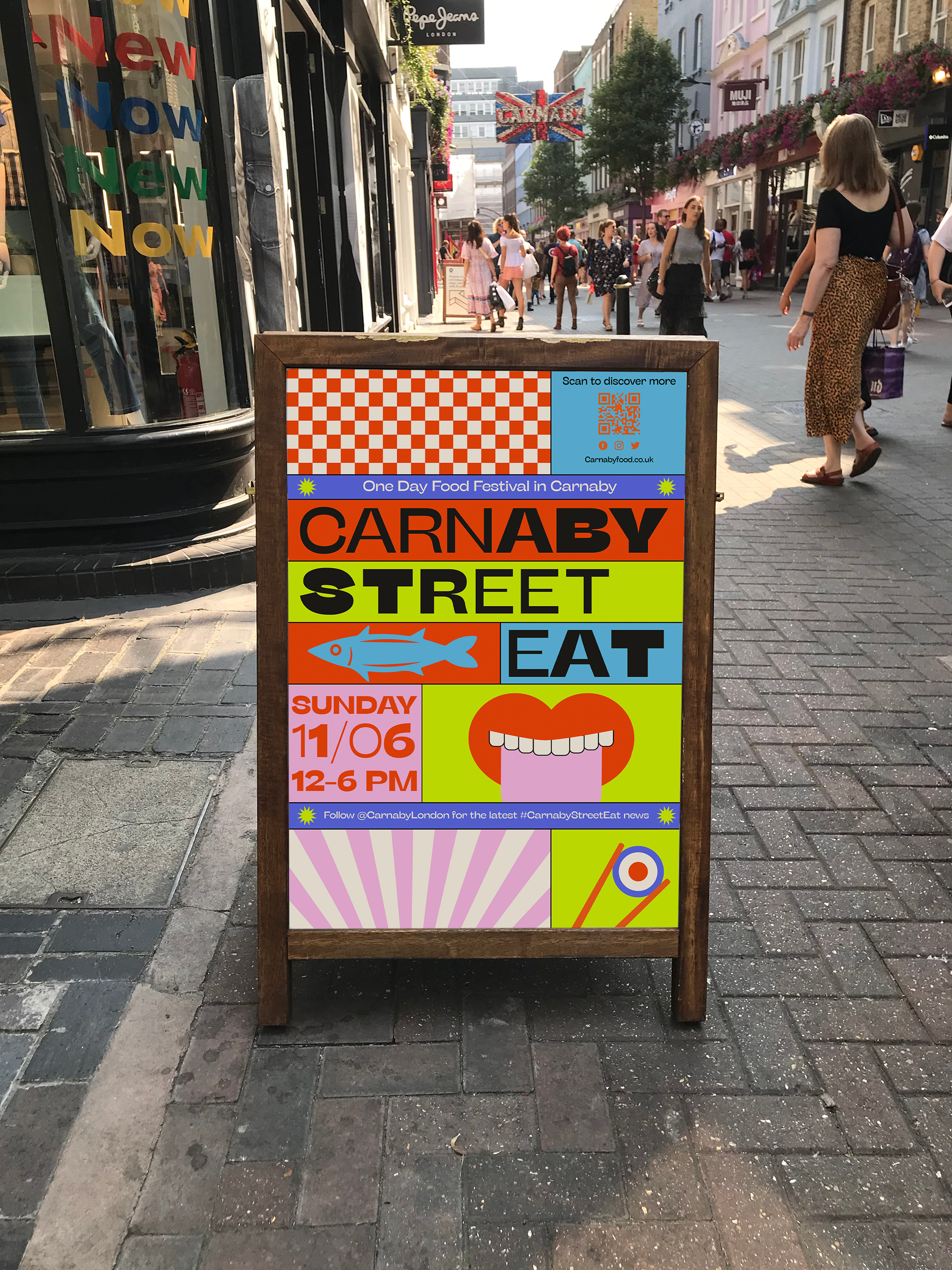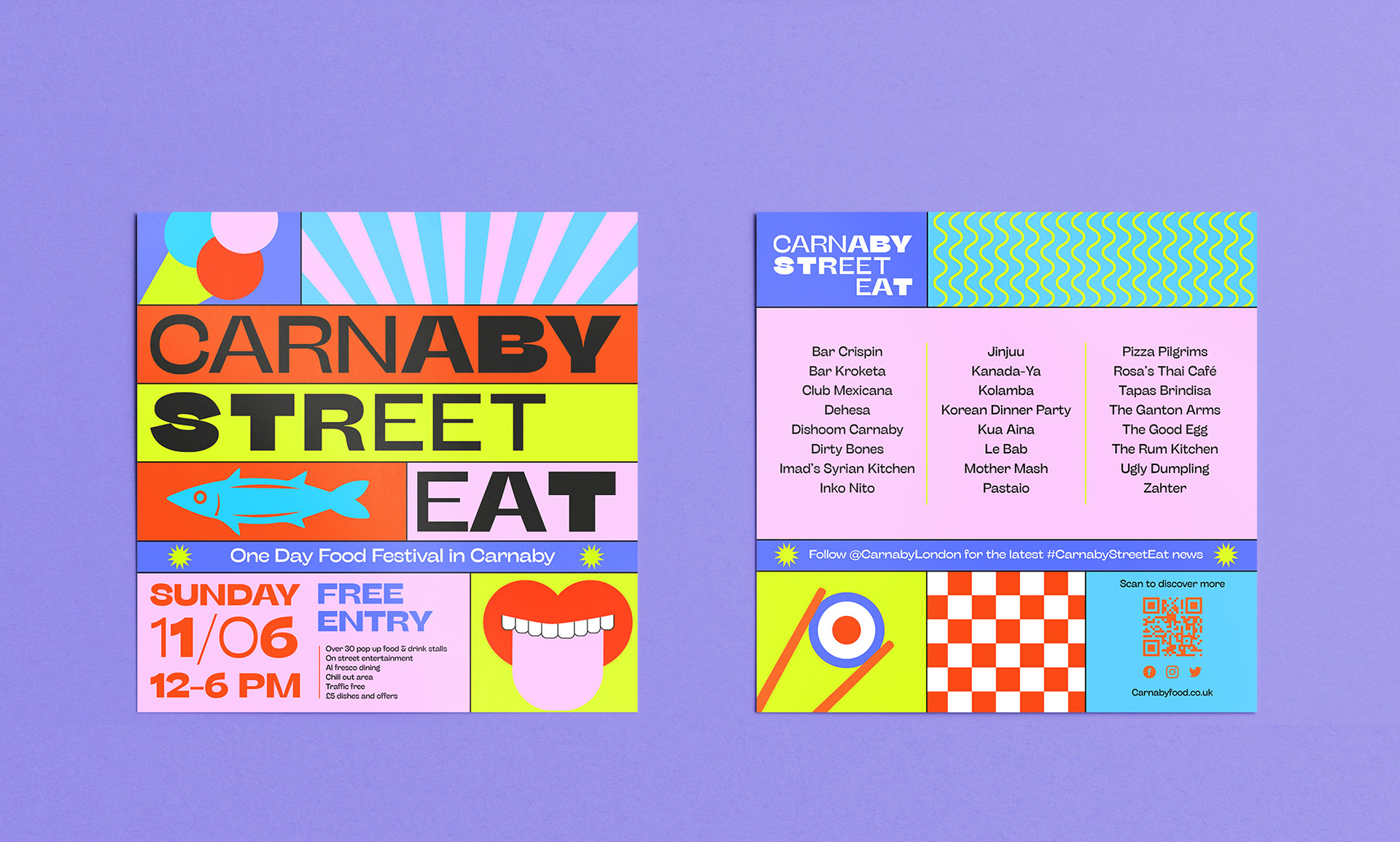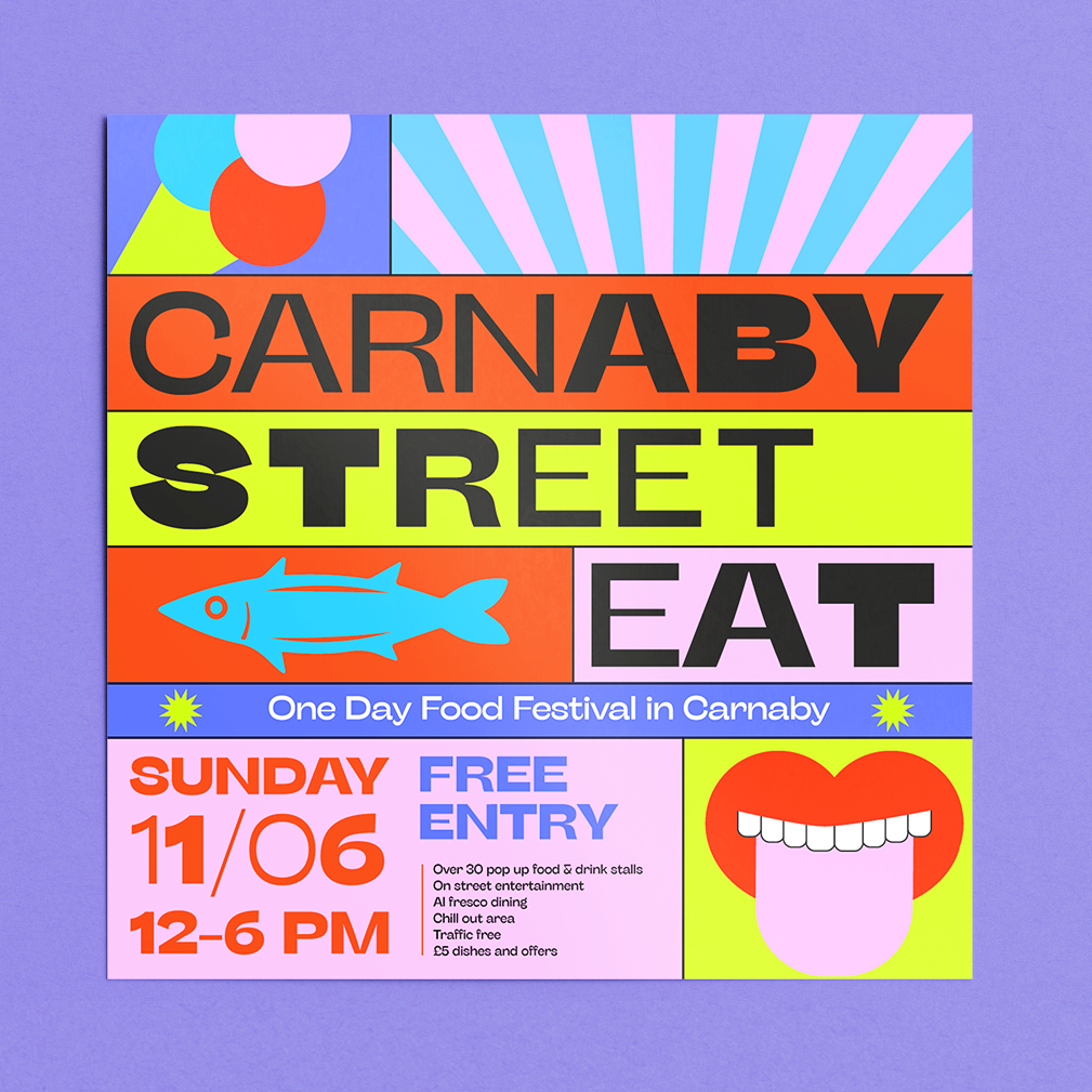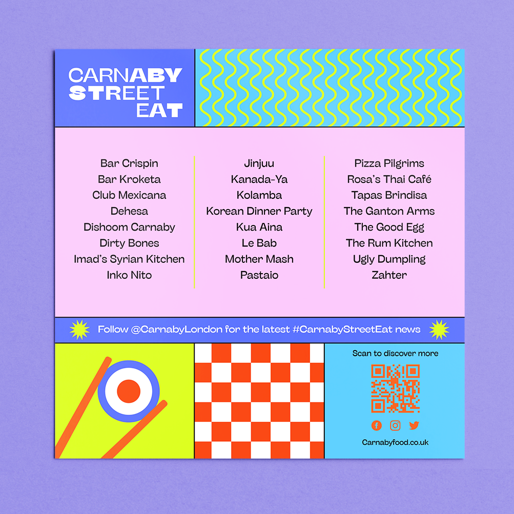 A concept for a vibrant culinary experience celebrating the bold spirit and rich heritage of Carnaby Street. Visual identity takes inspiration from the patterns an